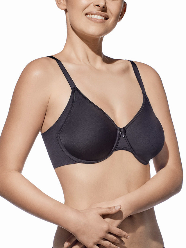 Sujetador básico de copa preformada y amplia espalda pensada para disimular imperfecciones. Comodidad absoluta